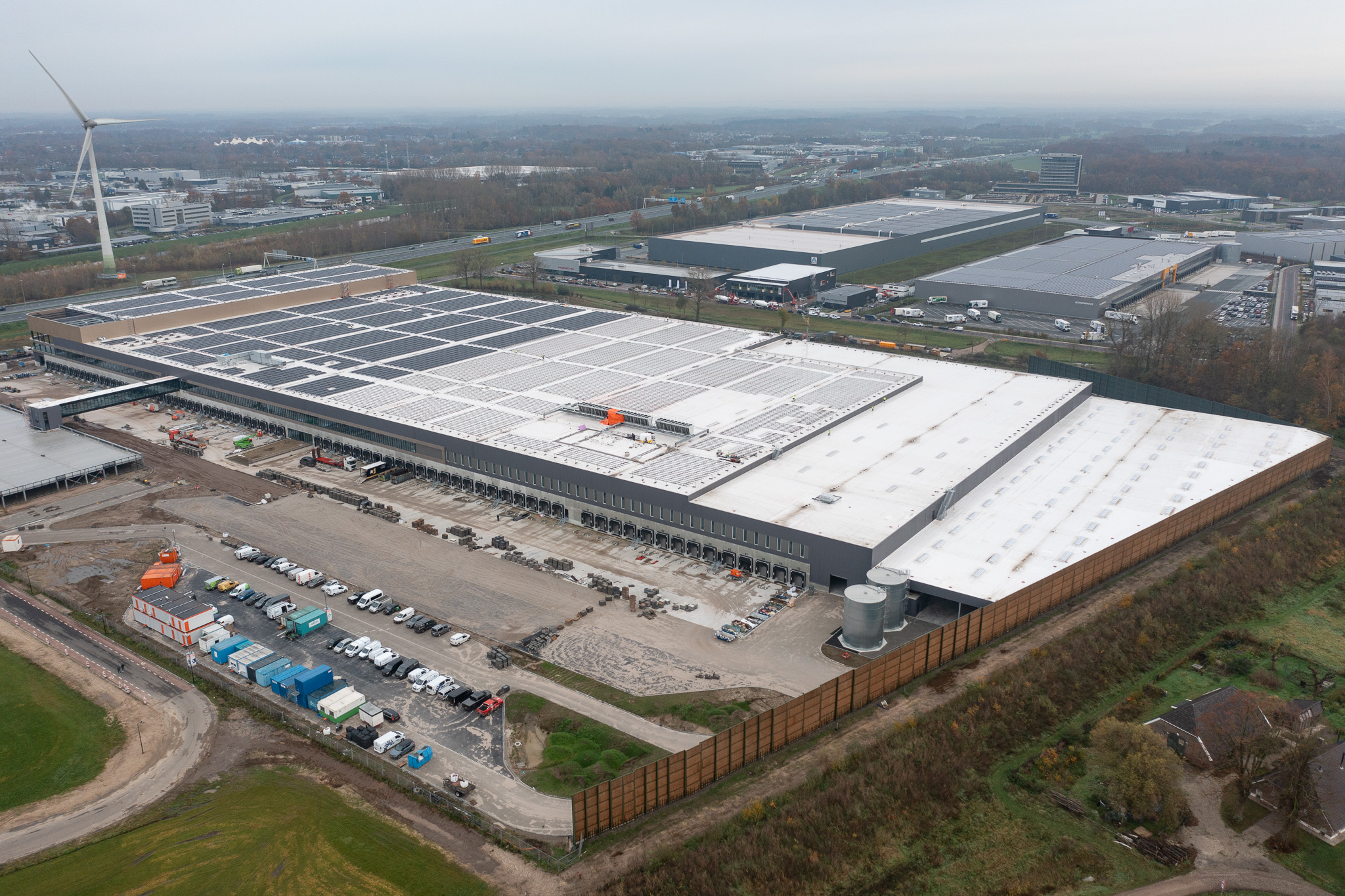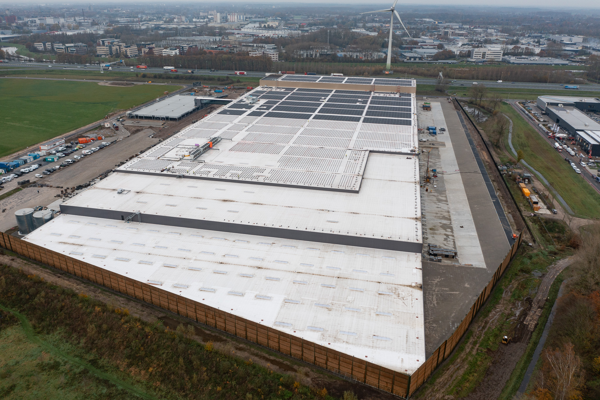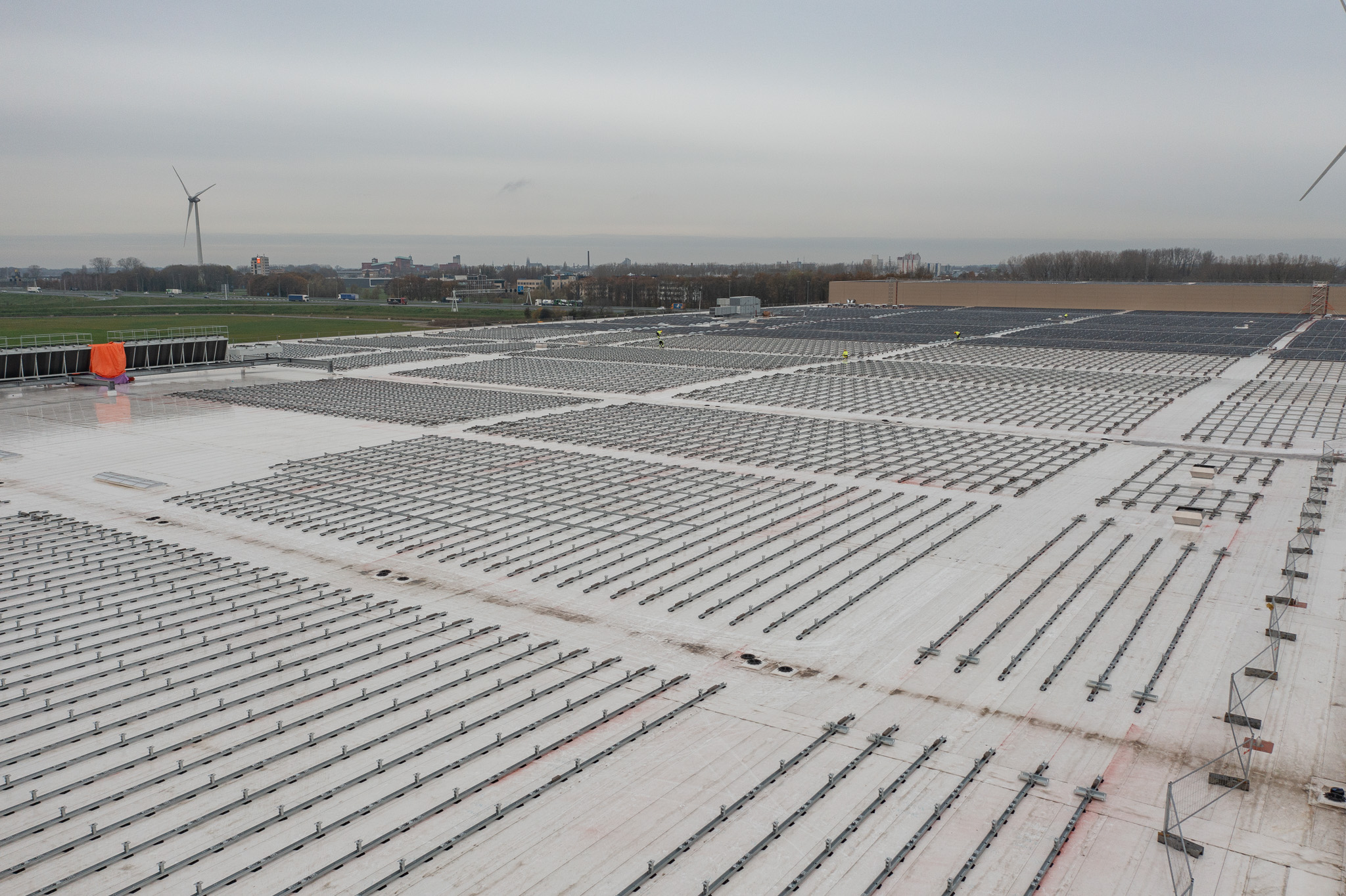 Kieszon, qui fait partie de la société d’énergie Greenchoice, a été chargé de réaliser un projet photovoltaïque avec plus de 14 000 panneaux sur l’énorme toit. Wave de PanelClaw a été choisi comme système de montage pour le projet. Voir ci-dessous une impression (Nov 2023) du projet.