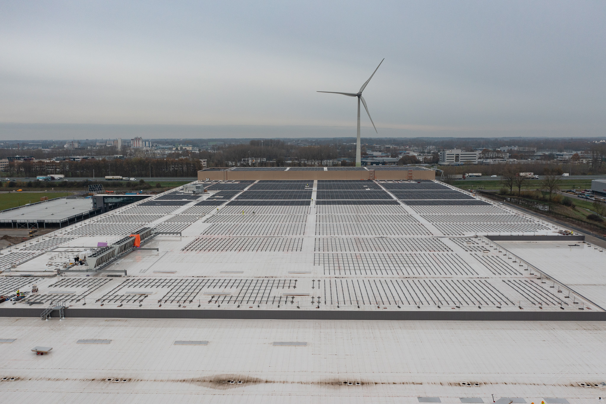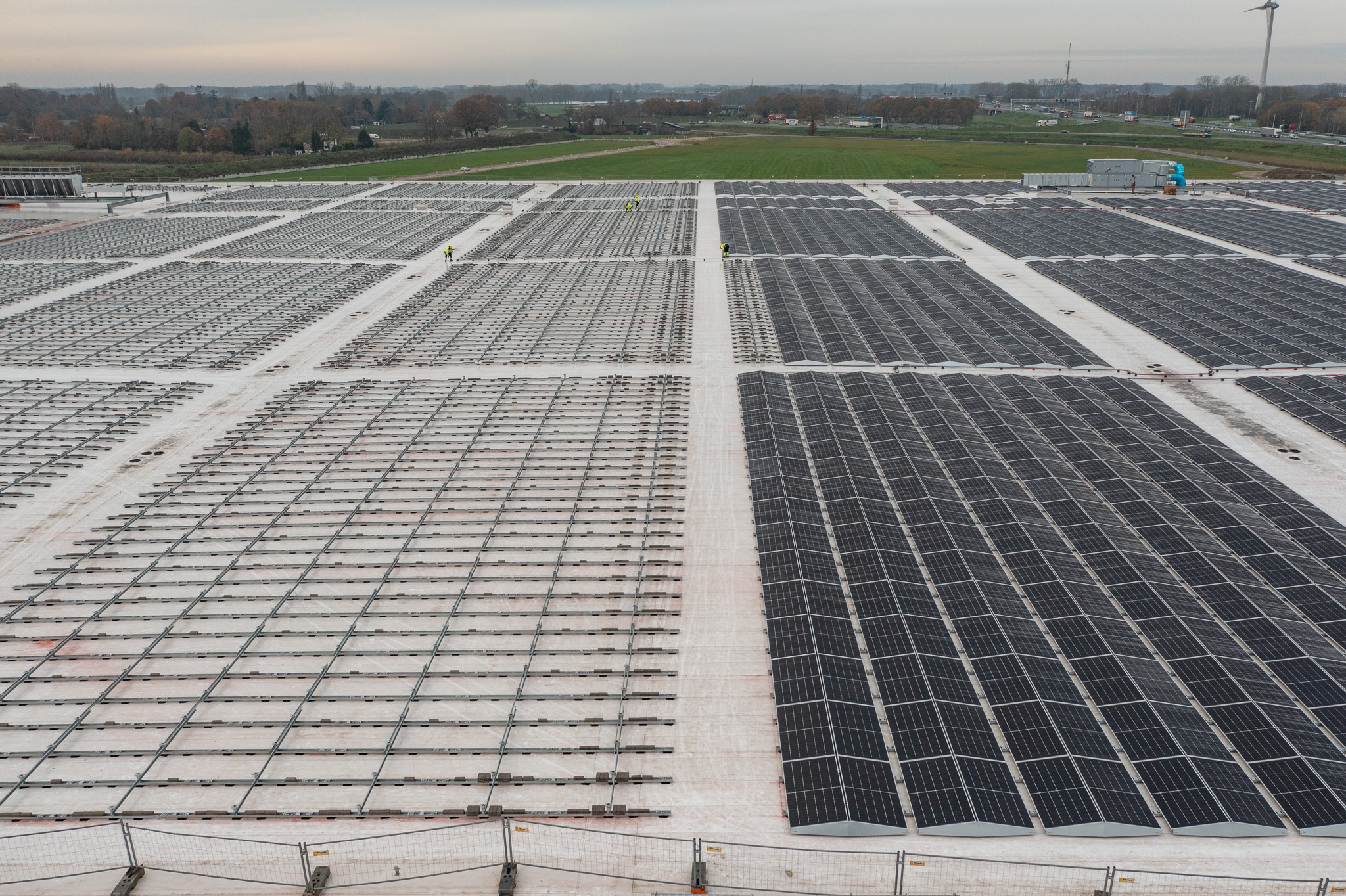Kieszon, onderdeel van energiebedrijf Greenchoice, is ingeschakeld om op het enorme dak een PV-project met ruim 14.000 panelen te realiseren. Daarbij is voor het montagesysteem gekozen voor Wave van PanelClaw. Zie hieronder een impressie (Nov 2023) van het project.